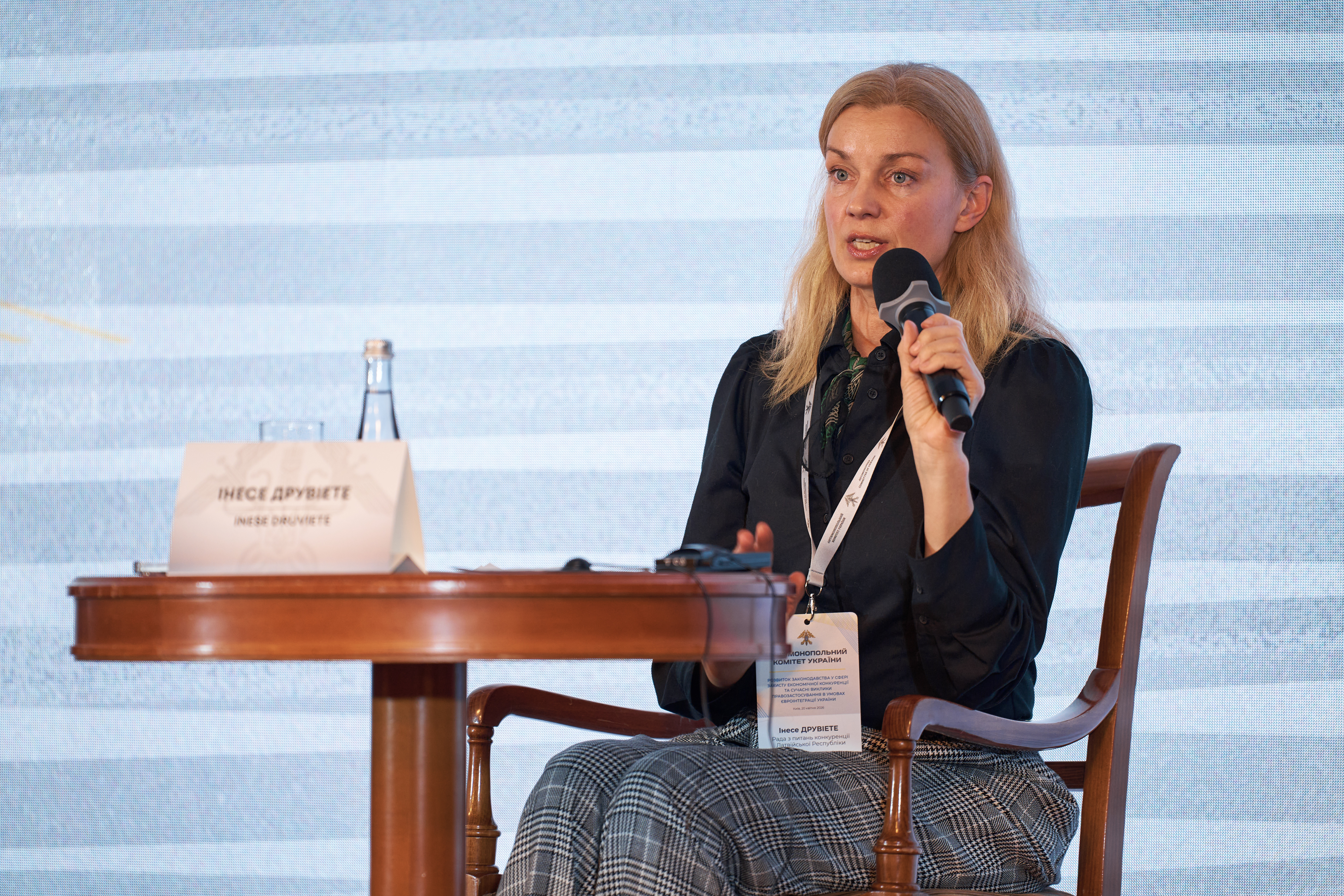 Міжнародний досвід у цій сфері представила Інесе Друвіете. Вона навела приклади з практики розслідування справ про зловживання домінуючим становищем, окреслила підходи до застосування положень Директиви (ЄС) 2019/633 щодо недобросовісних торговельних практик, а також проаналізувала вже розглянуті кейси та основні виклики, що виникають у цій категорії справ.