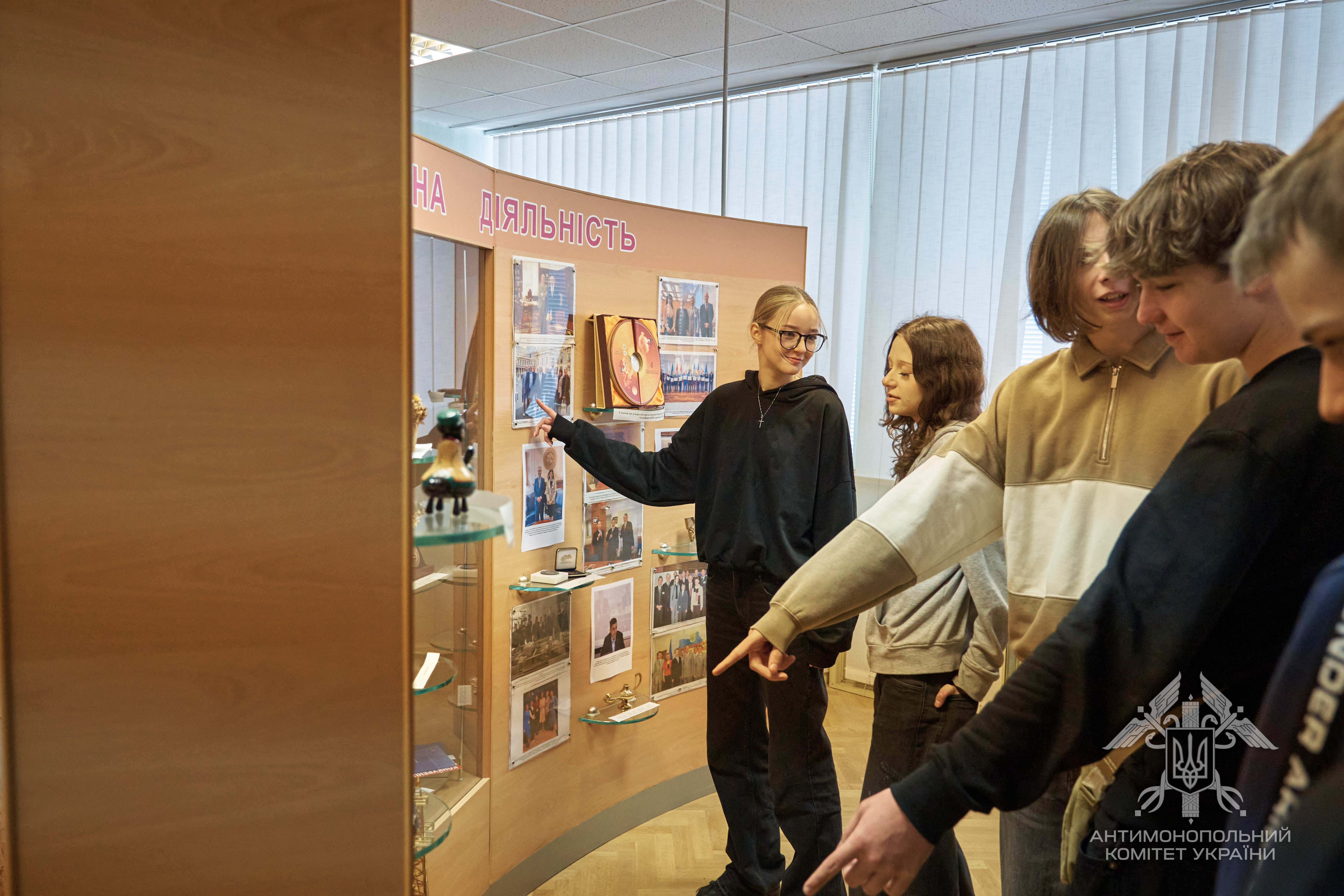 Студенти також відвідали музей АМКУ, де дізнались про історію створення конкурентного відомства, його міжнародну взаємодію, основні нормативно-правові акти, а також резонансні рішення Комітету у сфері захисту економічної конкуренції.