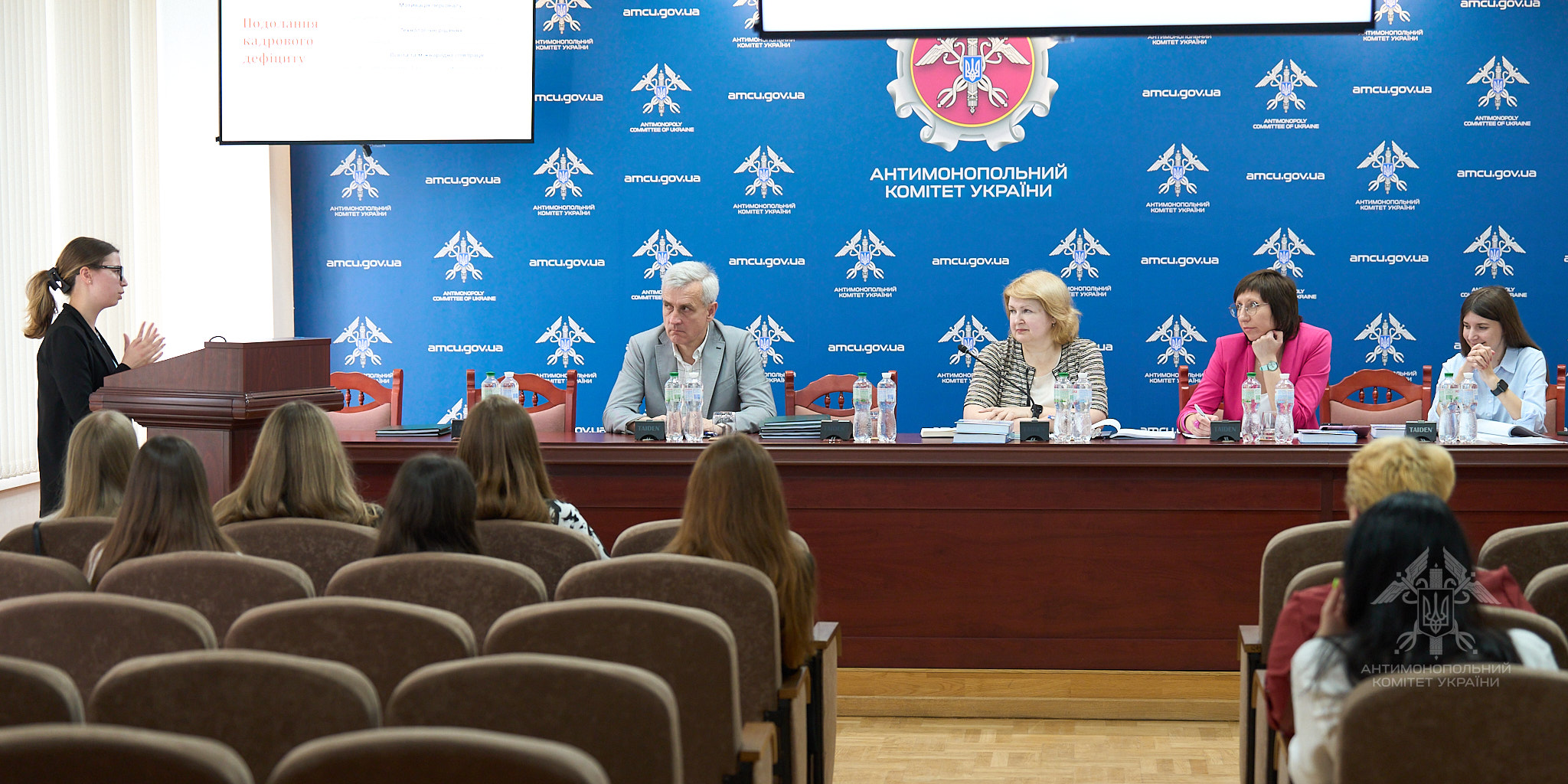 Екзаменаційна комісія у складі першого заступника Голови Комітету – державного уповноваженого, к.е.н. Ольги Музиченко, проректора з науково-педагогічної роботи та міжнародних зв’язків, д.е.н., проф. Анжеліки Герасименко, завідувача кафедри економічної теорії та конкурентної політики, д.е.н., проф. Юрія Уманціва та к.е.н., доцента Юлії Ясько, високо оцінила кваліфікаційні роботи, які представили студенти: