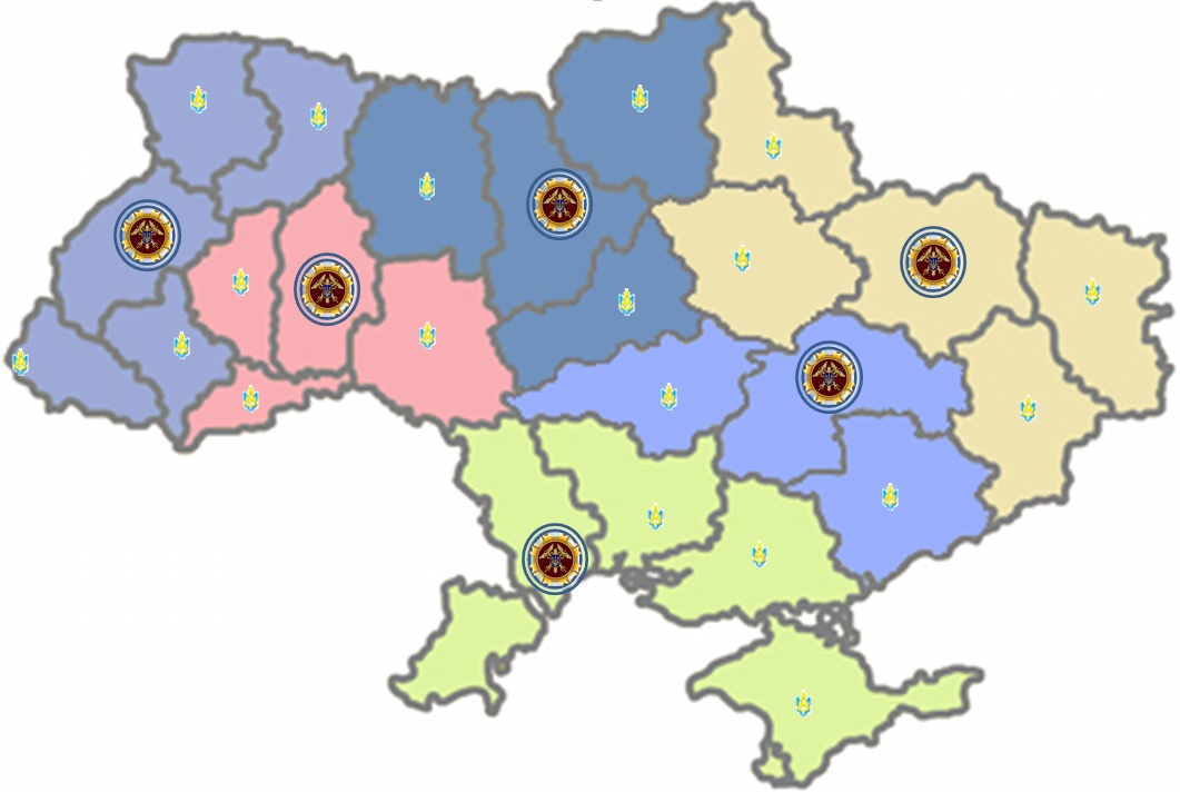 - Південно-Західного (Хмельницький), до якого приєднаються Вінниця, Тернопіль та Чернівці.