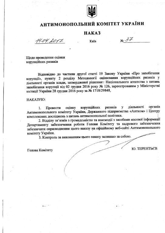 Наказ Антимонопольного Комітету України щодо проведення корупційних ризиків